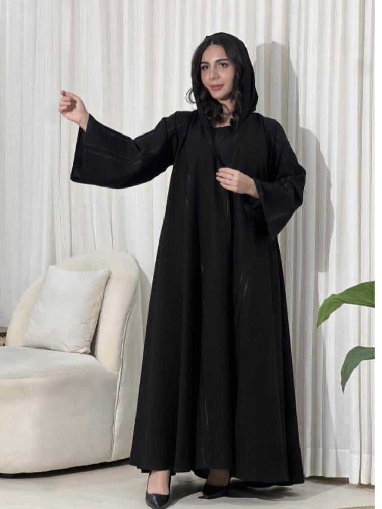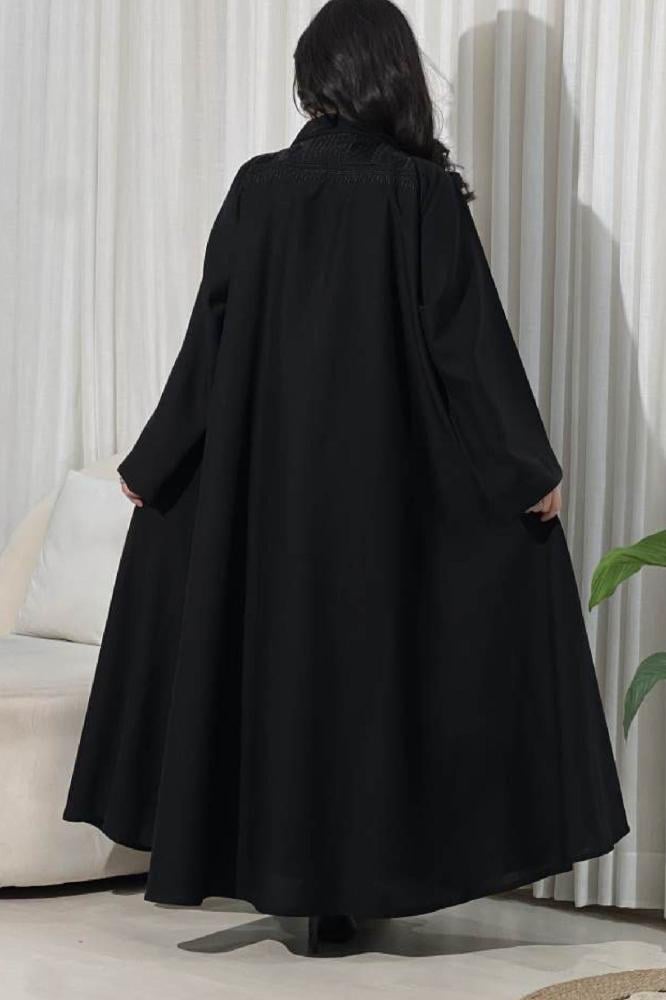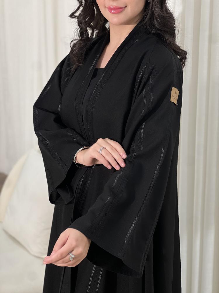 - اللون الأسود الكلاسيكي يبرز مظهر العباية ويجعلها قطعة أنيقة لا مثيل لها.
